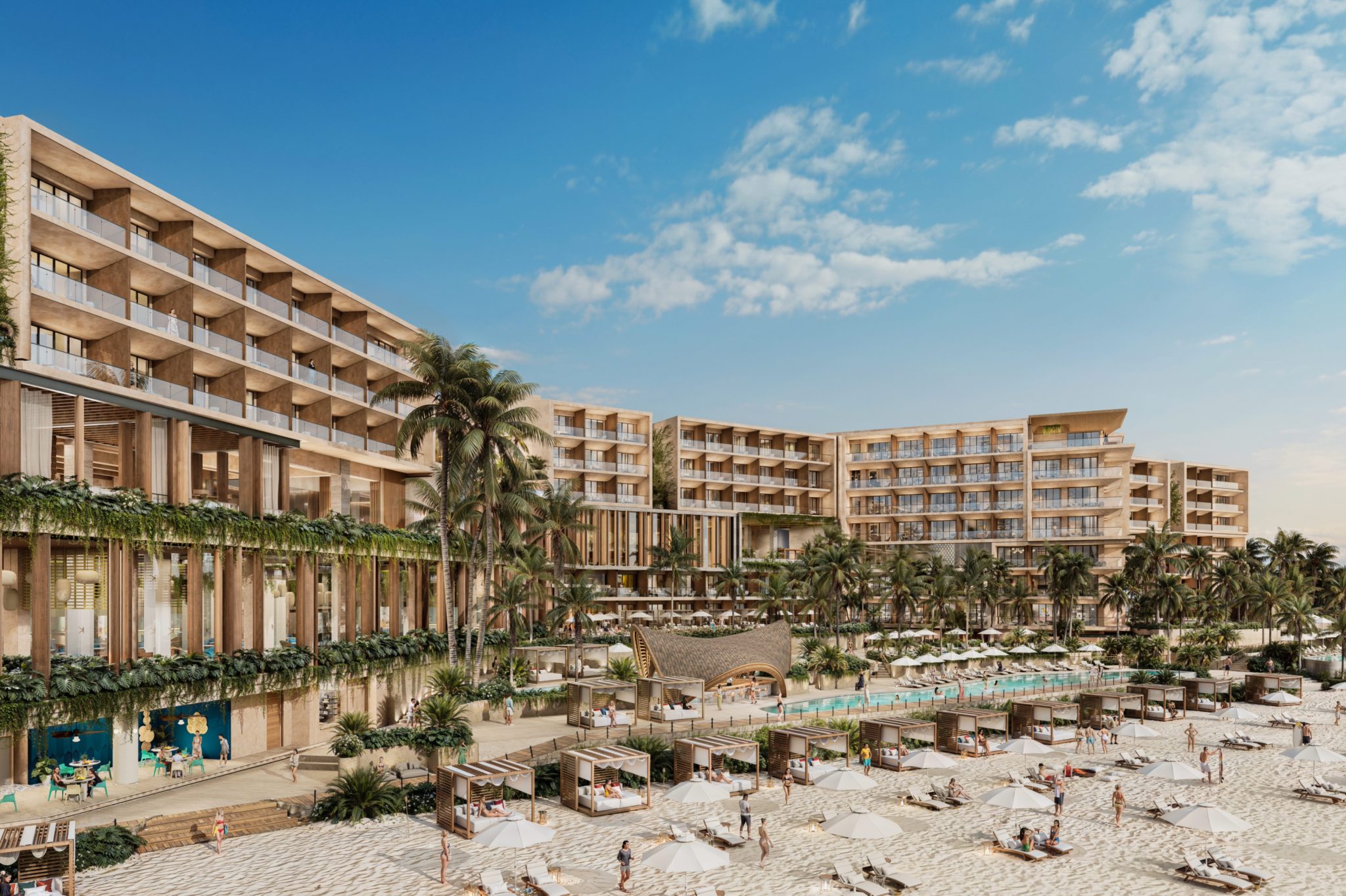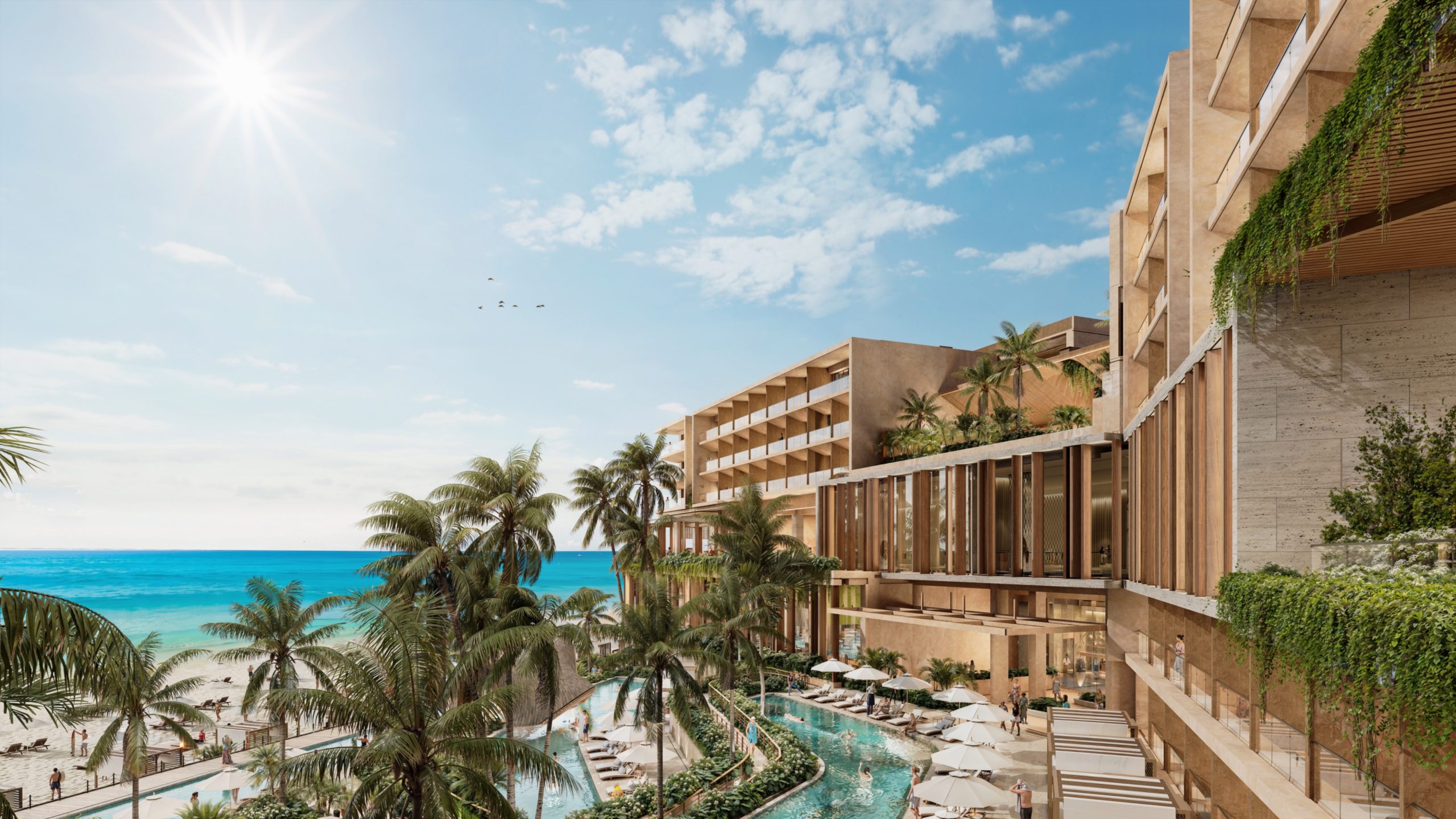 Suites are oriented toward nature some with tranquil views of the mangrove, others opening to the vibrant Caribbean Sea. Two sweeping bays of pools and sundecks are framed by five eight-story towers, bringing vertical elegance and natural light to every corner of the resort. Contemporary lines, tropical textures, and gentle transitions lead the way to the sea transforming each moment into a visual and emotional journey.